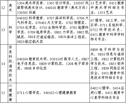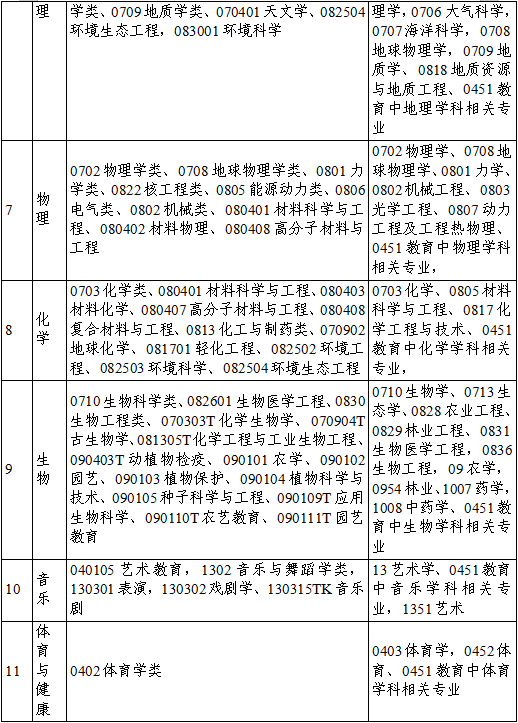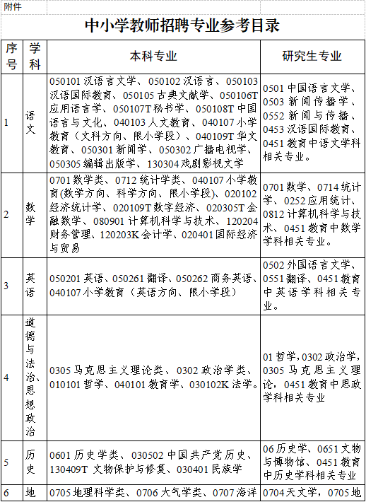 附件:中小学教师招聘专业参考目录