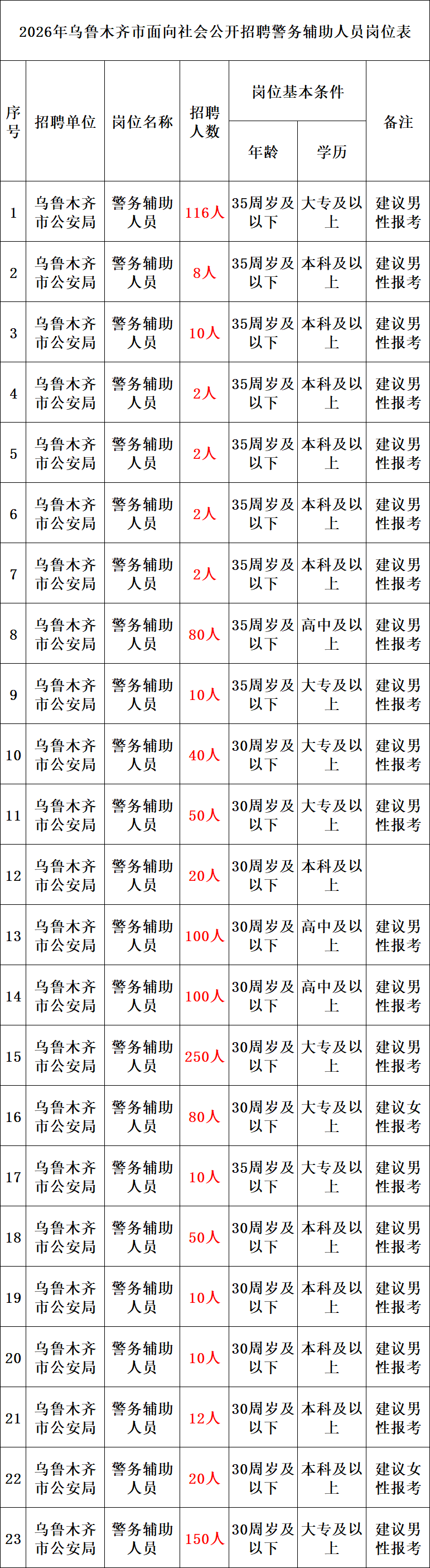 附件12026年乌鲁木齐市面向社会公开招聘警务辅助人员岗位表.xls